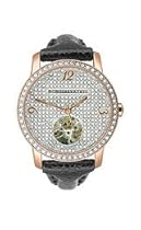 Shop online BCBGMAXAZRIA Women's BG6207 Haute Gold-Tone Black Leather Watch Dress watch, Automatic self-winding movement, Polished rose-gold-tone hands and sweep seconds, Applied polished rose-gold-tone